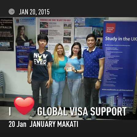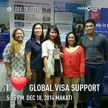 Last month, I was able to receive my student visa! Thank you Global Visa Support for being part of it, by giving me all the assistance and support on the entire process. From the review up to the visa application, all I can say is Thank you. I really admire each staff they have there for their dedication and patience.