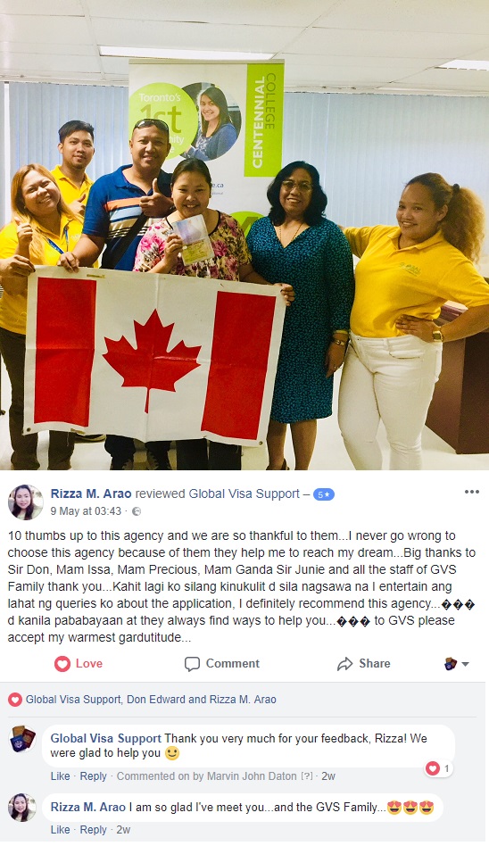 Highly recommended! Thank you so much My Global Visa Support Family for helping me on my application since day one, until I got approved and will soon fly to Canada. Special thanks to miss Venus and miss Ivy for assisting me every step of the application process. I highly recommend their service! More blessings and God Bless Global Visa Support!
